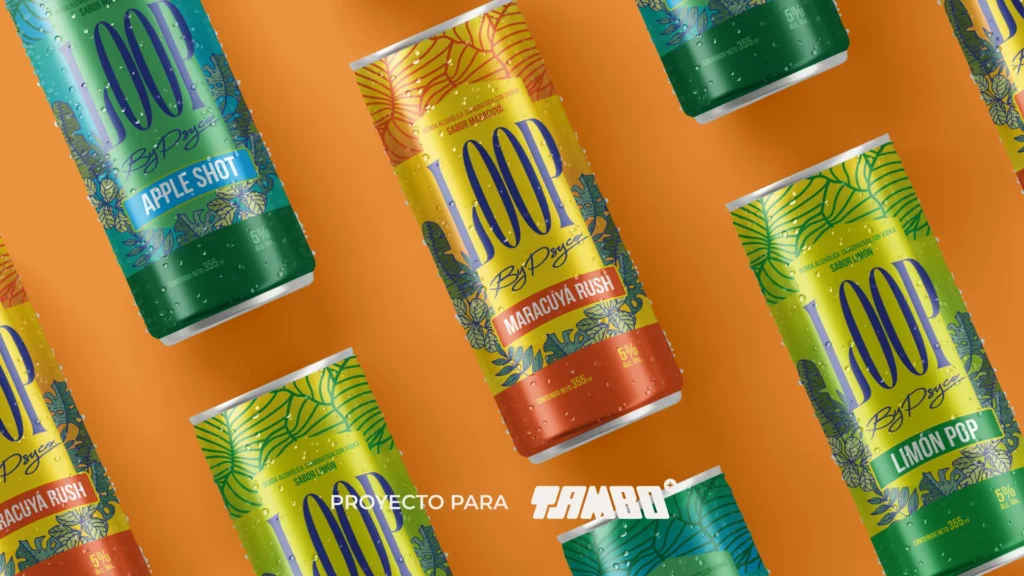LOOP es el proyecto que desarrollamos para Tambo donde integramos creación de nombre, branding, diseño, packaging y nuestro enfoque de diseño gastronómico para dar vida a una RTD fresca, divertida y juvenil.